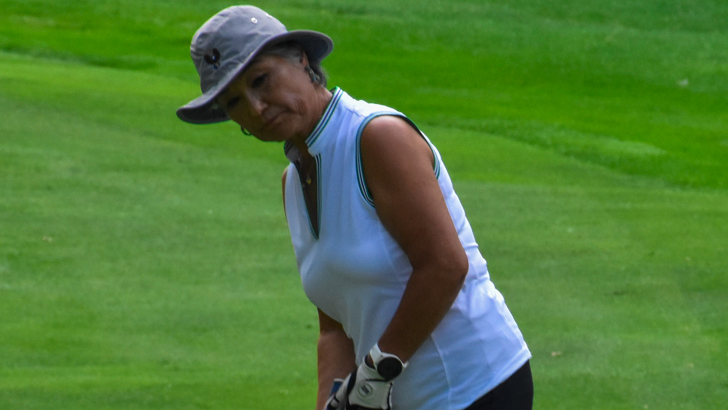 Garrett Kuhla reads his putt on 11 green
